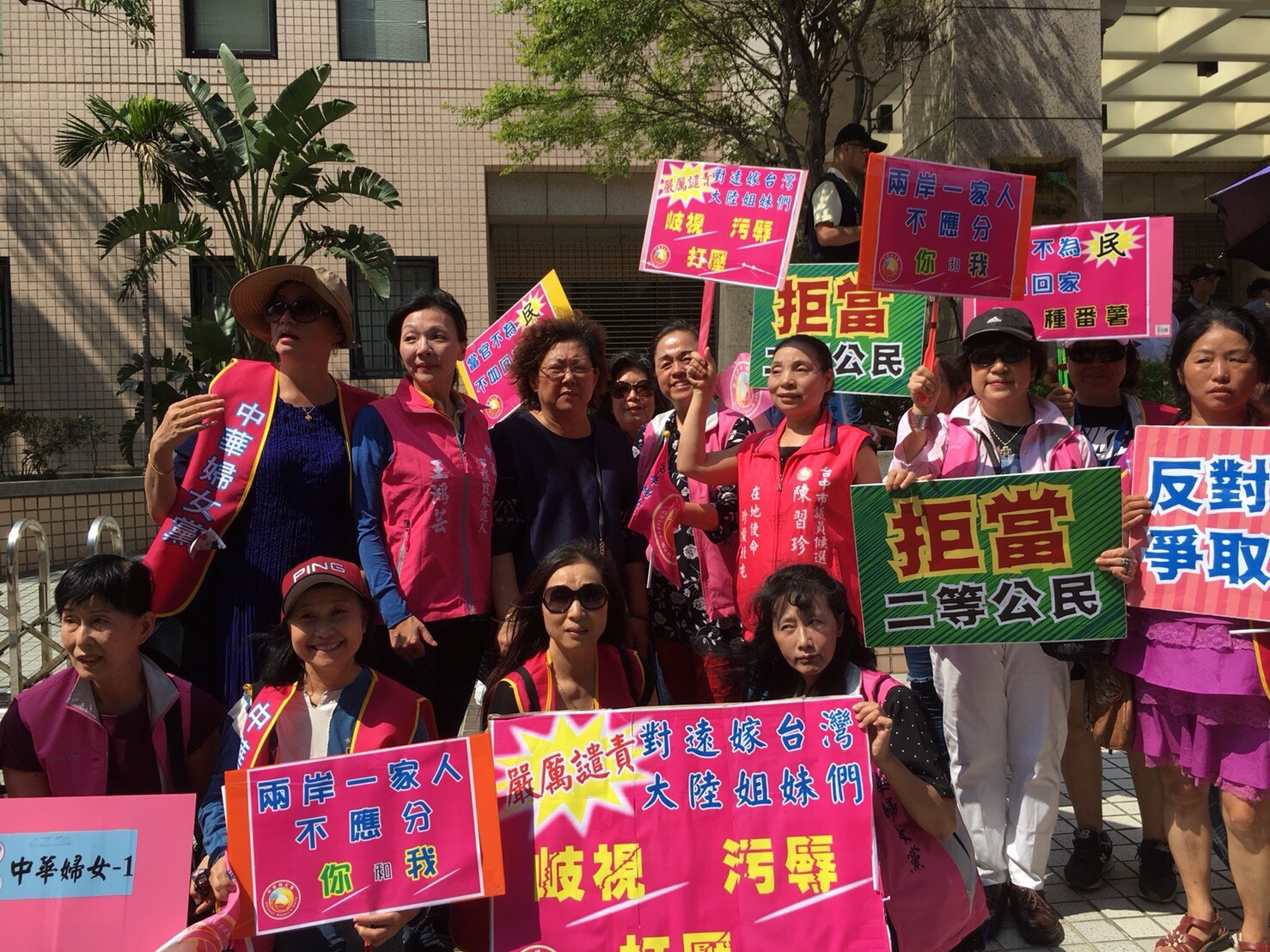 當日各團體聚在移民署抗議,台北法院按鈴申告,要求蔡易餘必需岀來,舉辦記者會對全台的陸配道歉,並承認失言,也要求民進黨中央讓全體參選人簽署「反歧視」切結書,否則將會號召全國陸配以遍地開花方式展開抵制。