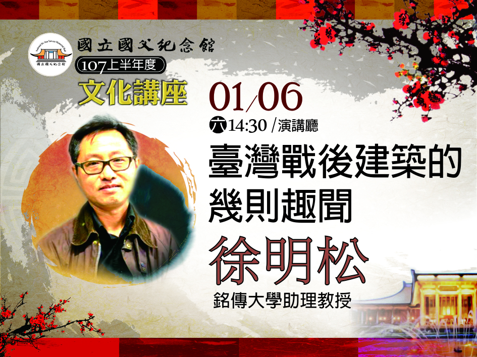 【記者 江文賓 / 玉女 報導】文化部所屬國立國父紀念館為豐富民眾多元性視野,開啟民眾對藝術、文化創意之想像,該館今年1月「文化講座」,特邀銘傳大學建築系徐明松教授於1月6日下午2時30分在該館演講廳,與民眾分享「臺灣戰後建築的幾則趣聞」,歡迎對建築有興趣的民眾前往參加。